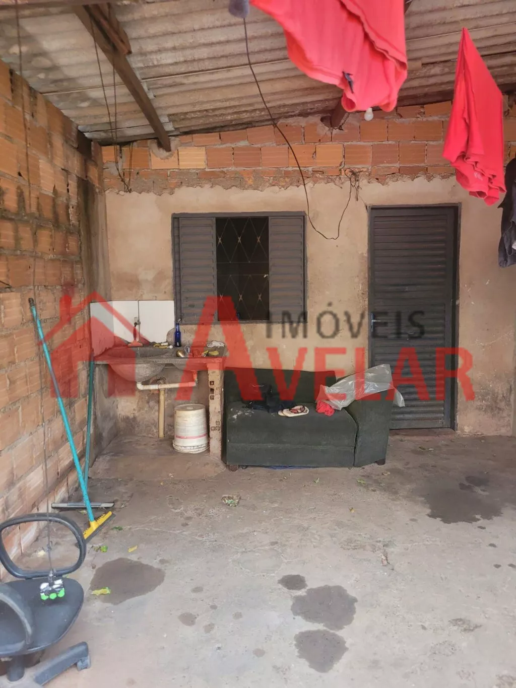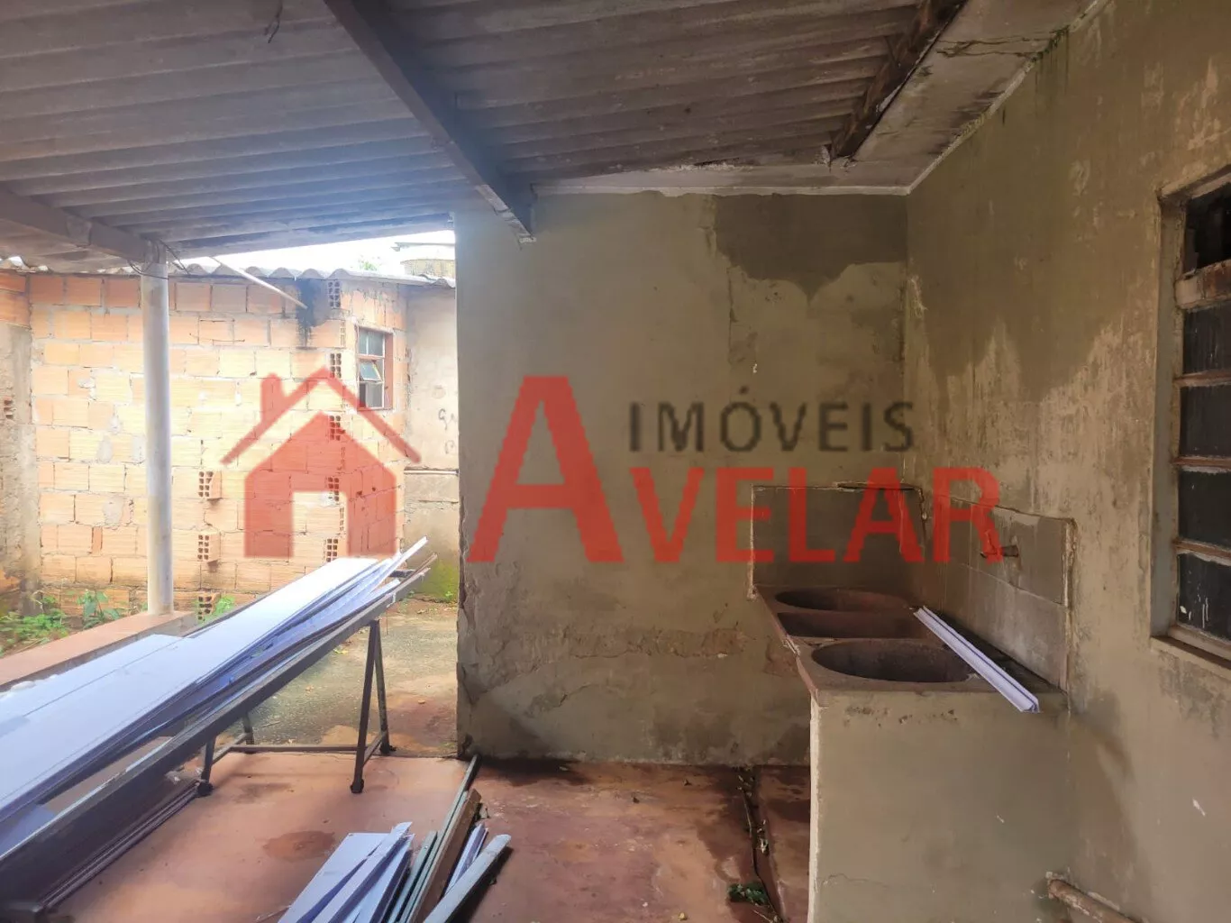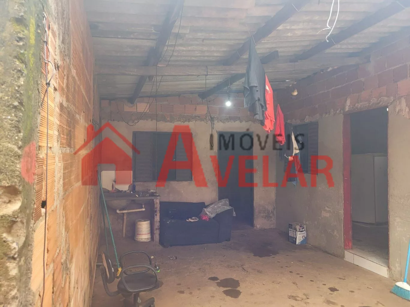 • Casa do Fundo com pé direito alto, porém não terminada, com 03 Quartos, Sala, Cozinha, Banheiro;